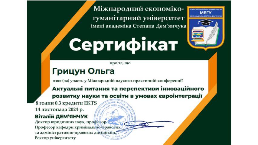 ГРИЦУН ОЛЬГА СЕРГІЇВНА
