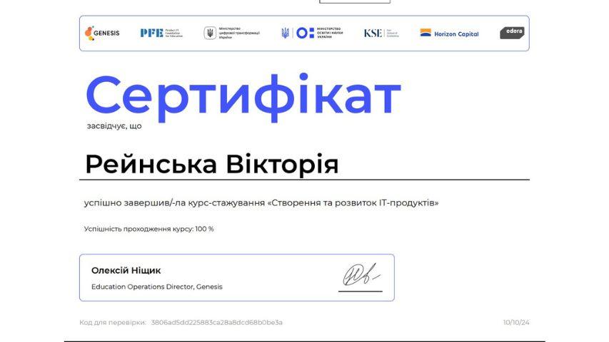 • Всеукраїнське тестування з фінансової грамотності (сертифікат № VTFG_a_006 від 18.11.2025 року, 2 години)