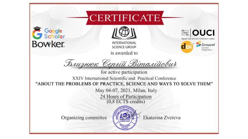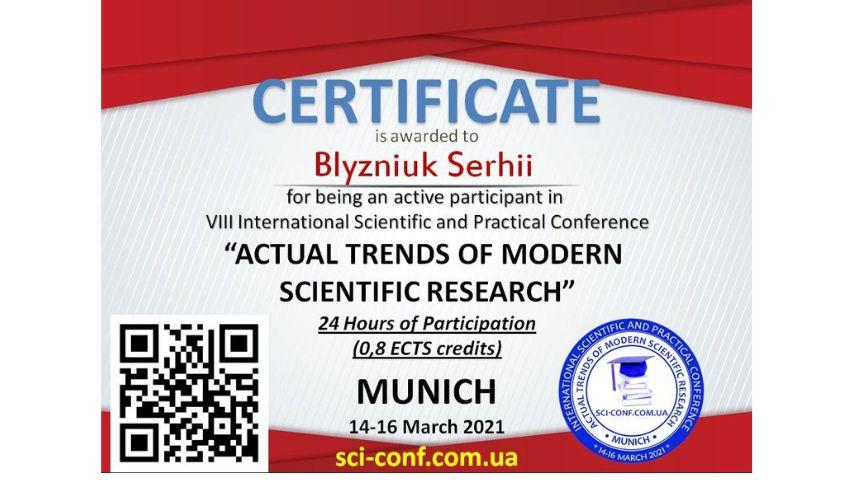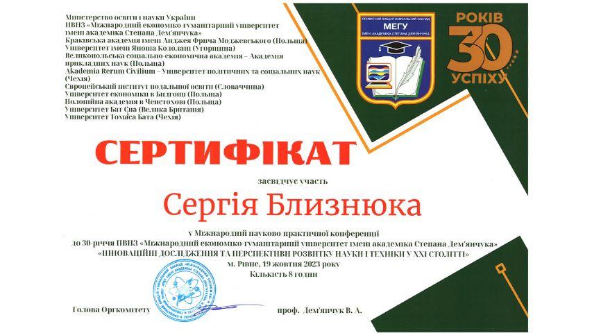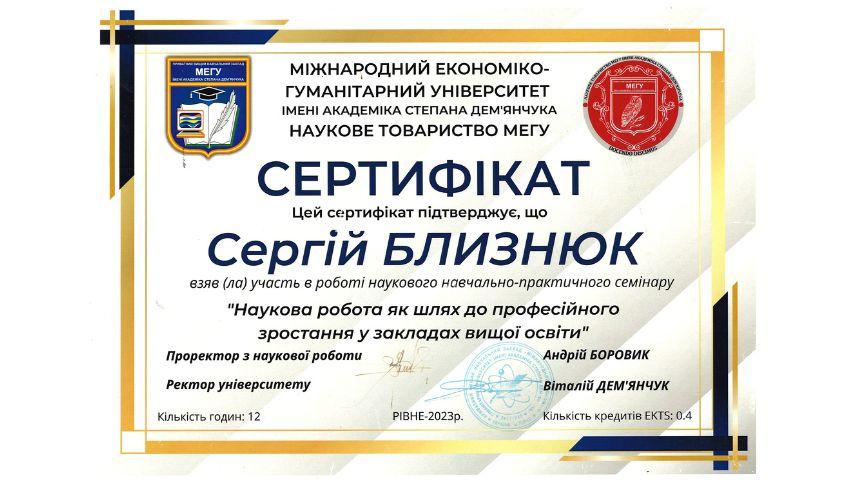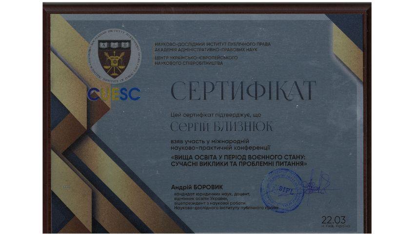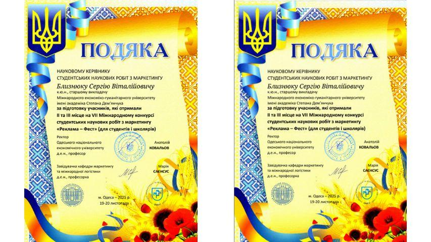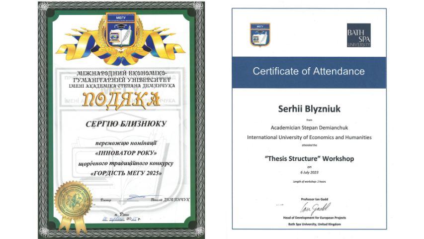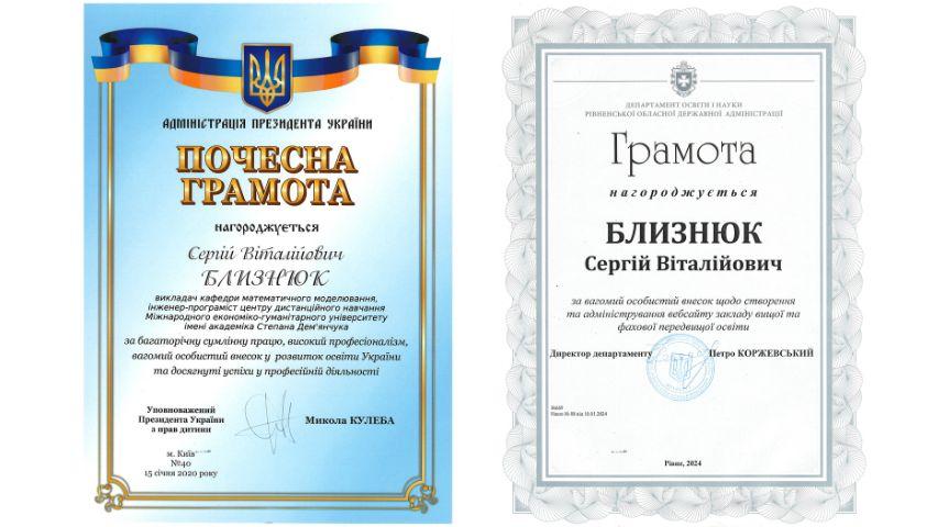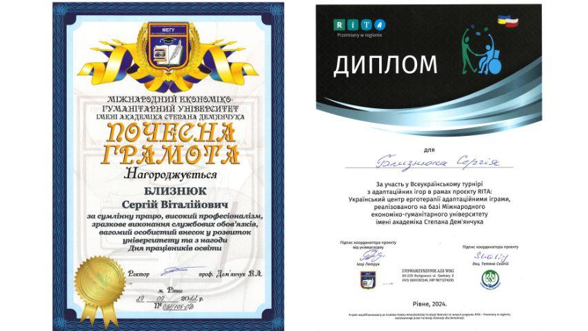 Отримав почесний диплом в номінації «Кращий вчений з науково метричною базою». 19.05.2023 р.