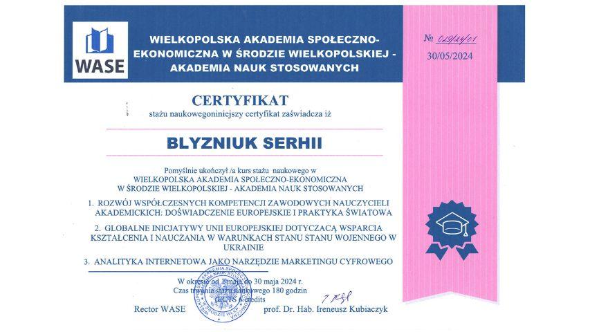 Wielkopolska Wyzsza Szkola Spotleczno-Economiczna w Srodzie Wielkopolskiej (Польща) в період 15.02.2016 до 28.02.2016. (60 годин, 3 кредити).